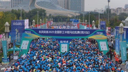 宁夏银川:展示各行业风采 2万名职工奔跑迎国庆