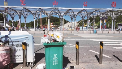 更令人揪心的是,即便垃圾桶近在眼前,仍有部分市民游客随手丢弃垃圾;罗马柱墙体上,还留有清晰可见的脚印……这些不文明行为,破坏了景区的秀美景色与文明氛围。
