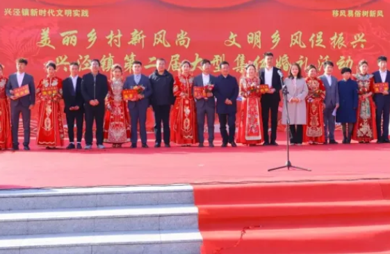 兴泾镇通过婚俗宣传进乡村、开展线上线下“婚姻课堂”、举办集体婚礼等方式,大力普及婚姻法、宣传文明婚俗,扎实开展移风易俗工作,深入推进婚俗改革,塑造文明婚俗新风尚,弘扬传承优良家教家风,让崇德向善的良好风尚蔚然成风。